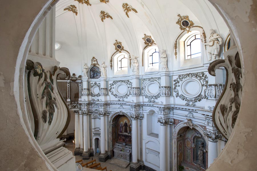 L’interno della chiesa, ricco di decorazioni, putti e stucchi, è considerato uno dei più importanti esempi di architettura barocca dell’intera Sicilia. Dopo aver visitato la chiesa potrete salire sulla terrazza panoramica dell’ex convento delle Clarisse e ammirare un tramonto mozzafiato.